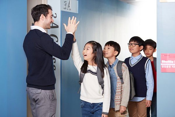 수업 종료 후에는 학생들과 눈을 맞추며 하이파이브 후 배웅